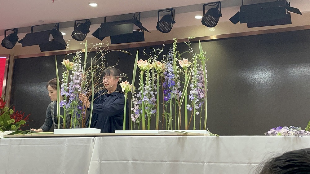 (新紫竹與花鄉的花藝師在為大家帶來年宵花打樣表演)